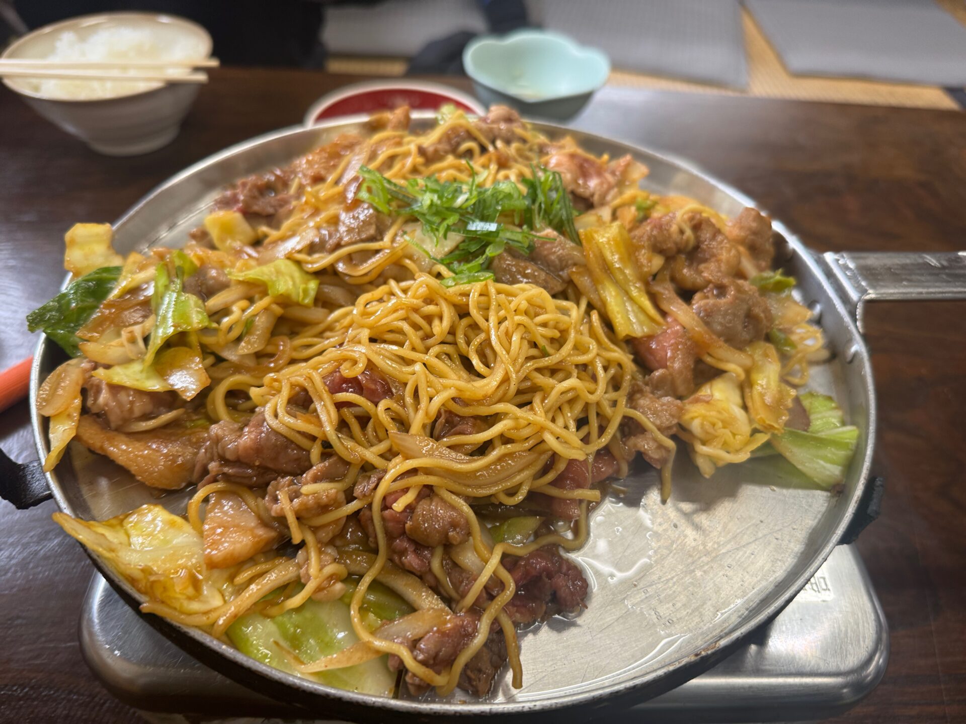 注文したものを混ぜてもらって焼いてもらいましたが分けて出してもらうことも可能のようです。最後そばが焦げ付いてしまうのでそばは後から注文する人もいるようです。味は味噌ダレでご飯にもビールにも絶対合う味です。