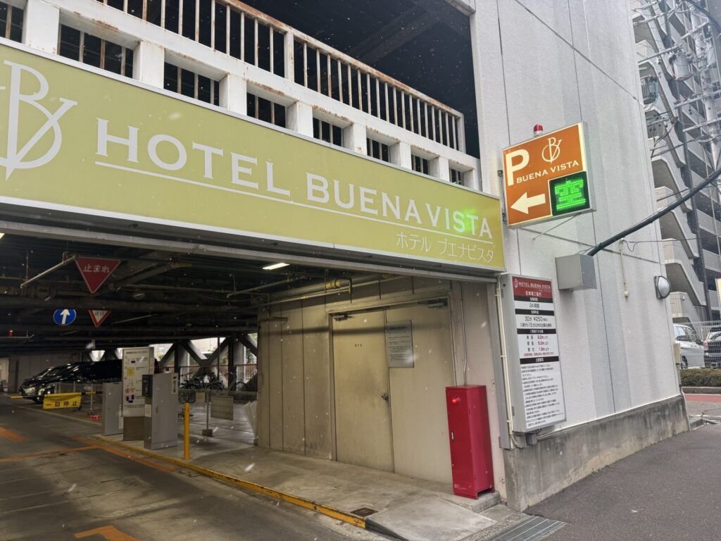 立体駐車場も完備です。高さは2.2mまでです。ホテルの地下駐車場は高さ制限2.1mでした。