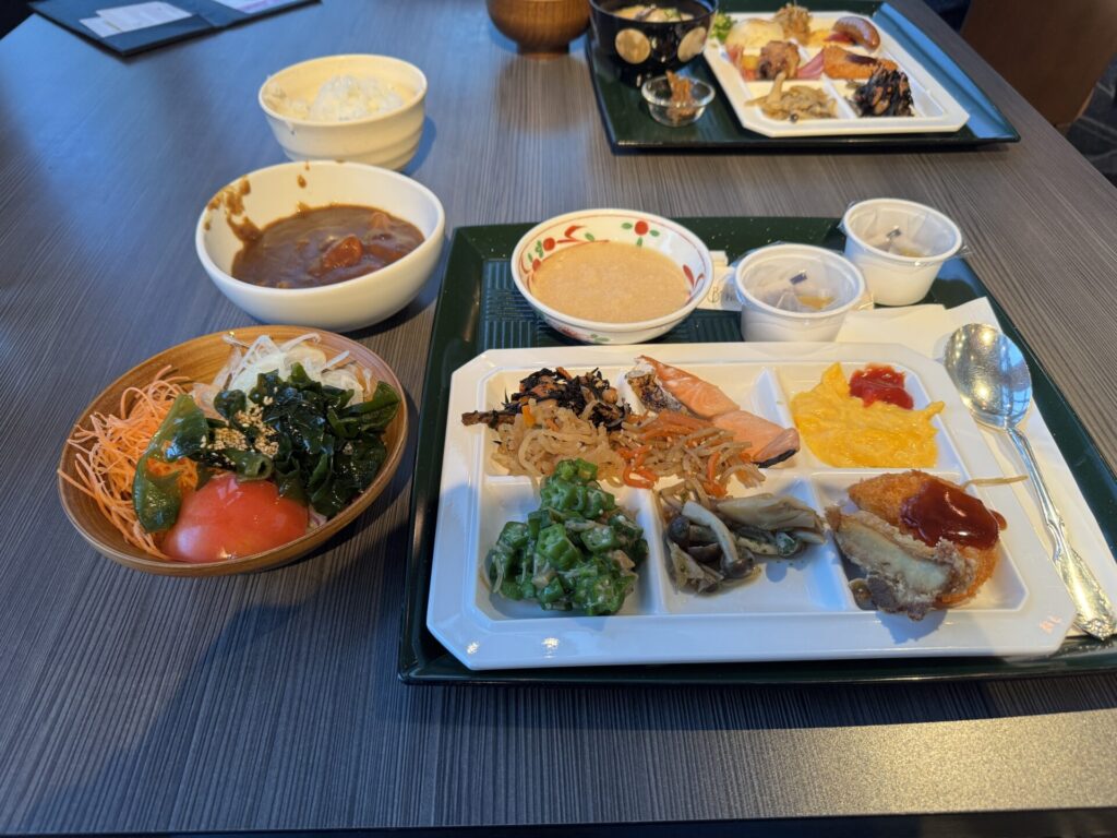 ホテルに大浴場はないのですが車で20分ほどのホテル翔峰の温泉大浴場に入ることができます。今度は商法にも泊まってみたいなと思うホテルで大きくて上品です。