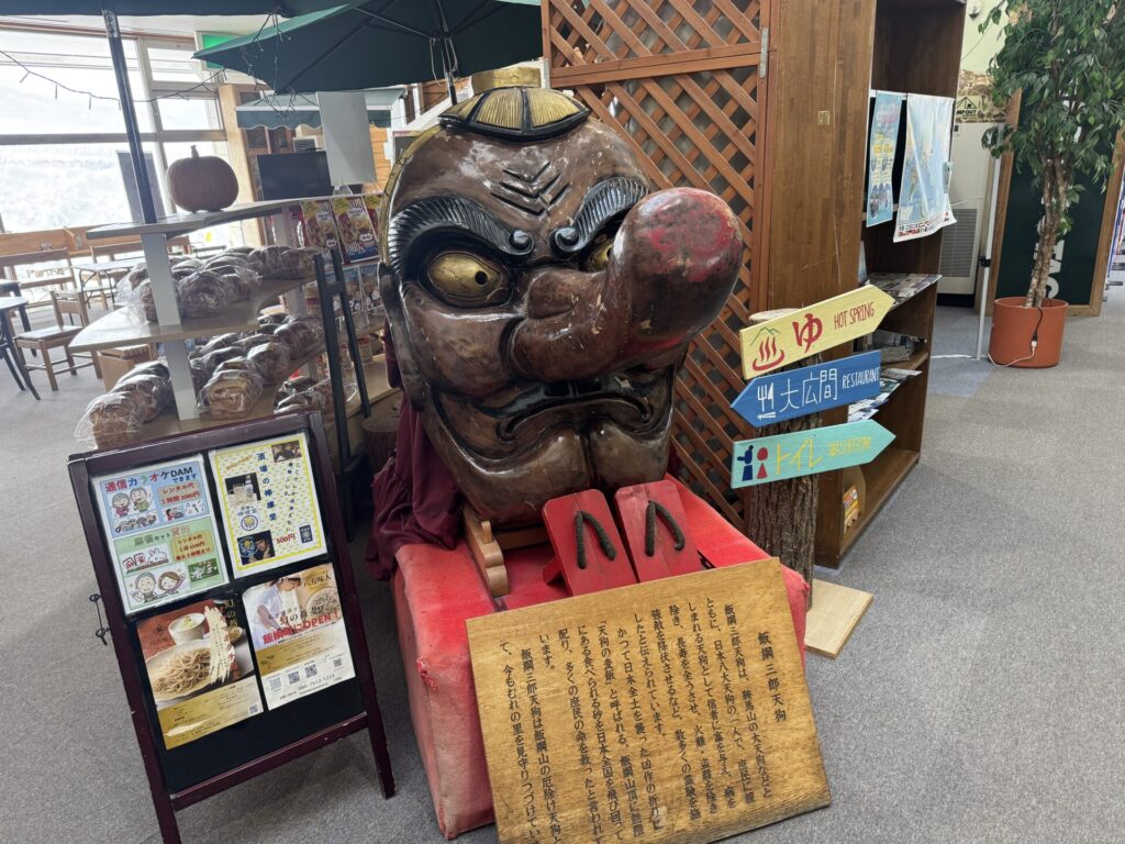 入館すると最初に目に入るのが天狗さんです。飯綱三郎天狗で日本8大天狗の一人だそうです。かつて日本全土を襲った飢饉のときに、「天狗の麦飯」といわれる飯綱山頂の食べられる砂を日本全国に飛び回って配って多くの人を救ったと言い伝えられているそうです。良い天狗さんです。