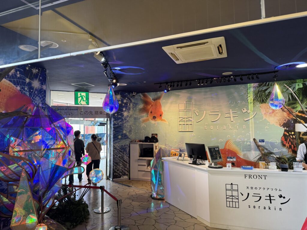 空と金魚のコラボタワー ソラキンでした。ここで入場料を払うと駐車料金は無料になります。無料券をもらいました。