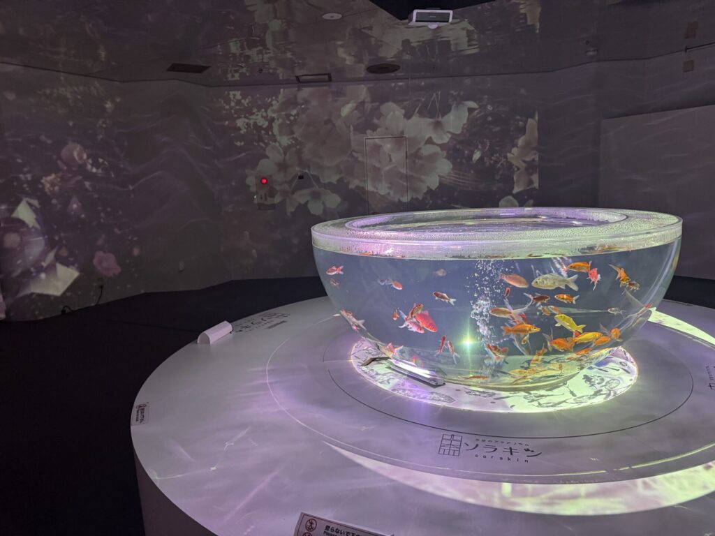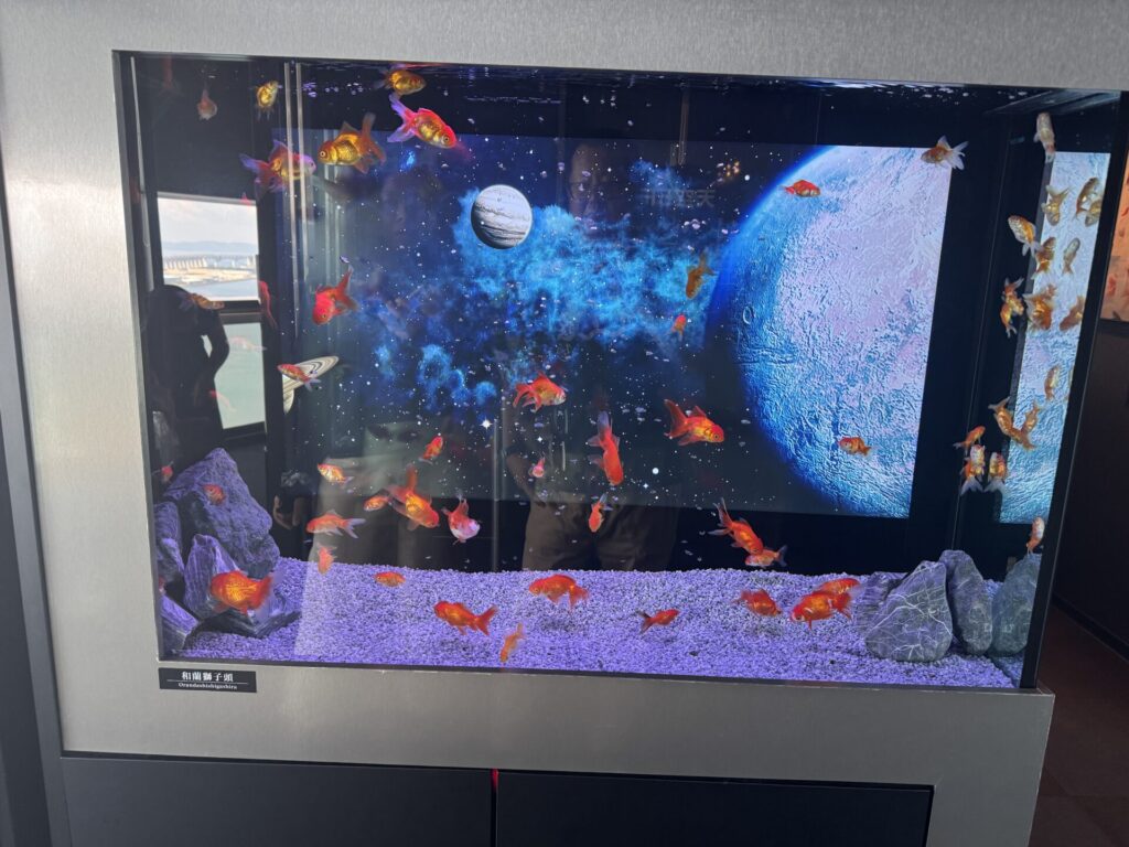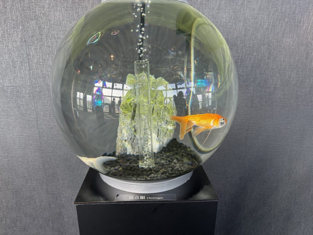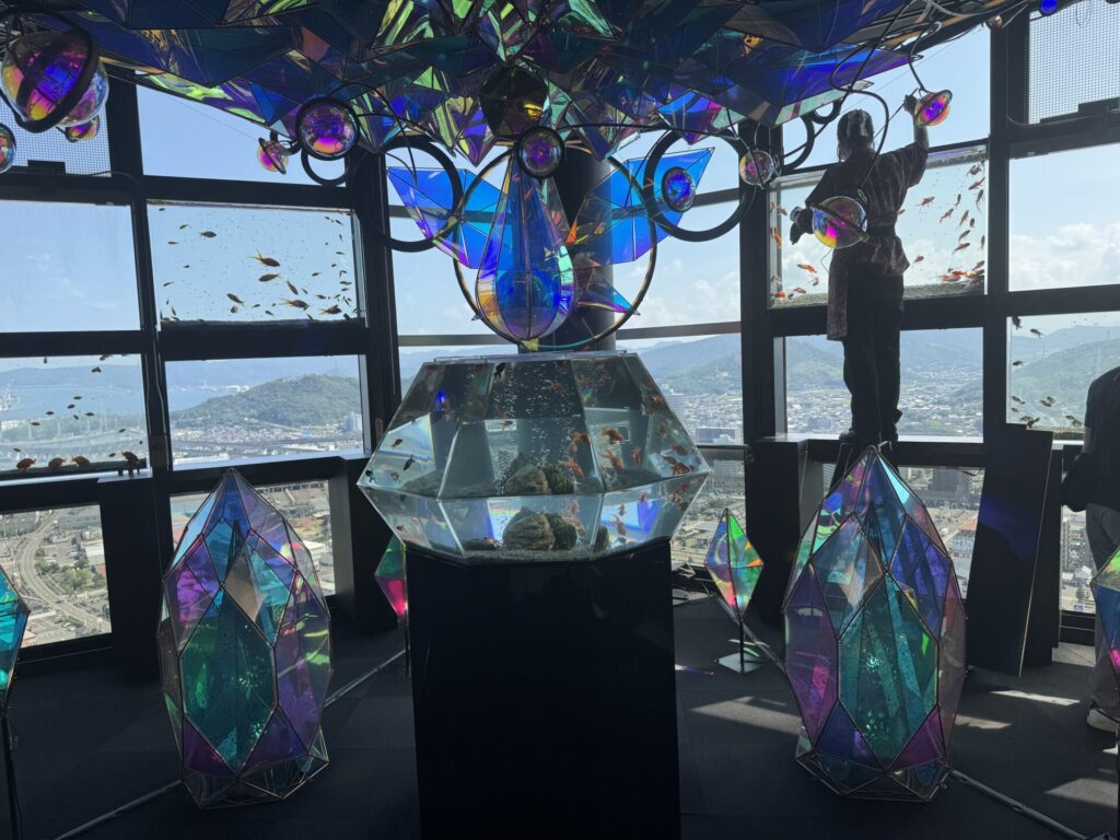 このとき自分が高所恐怖症であったことに気づきました。もうあと戻りはできません。覚悟を決めて金魚アートを見ることにしました。